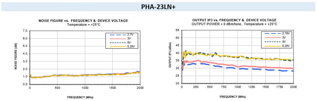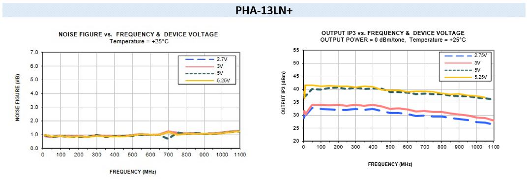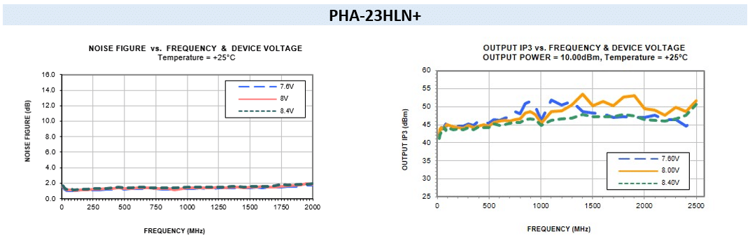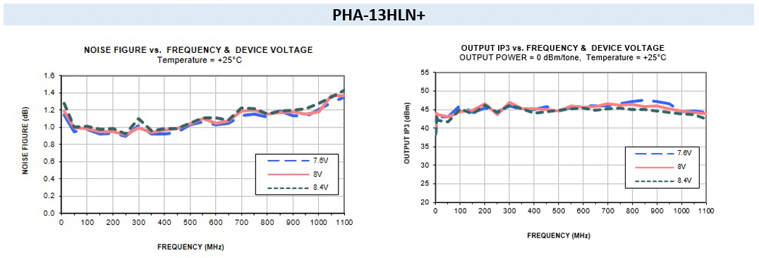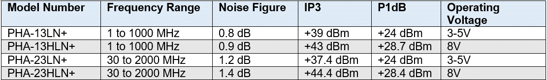 - All models provide outstanding noise figure across their operating bandwidths, as low as 0.8 dB for the low voltage versions, and no greater than 1.4 dB for the high voltage versions.