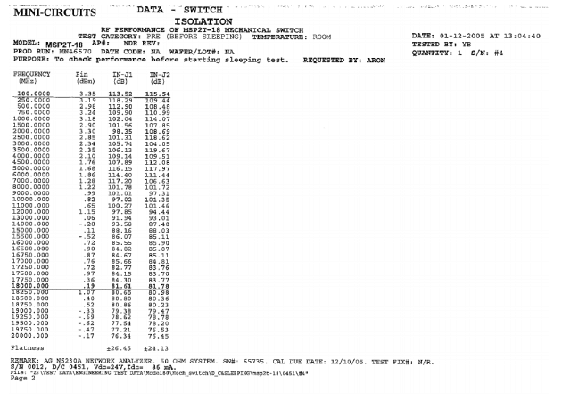 Insertion Loss and Isolation – N46570 – S/N 0012 (D/C 0451).