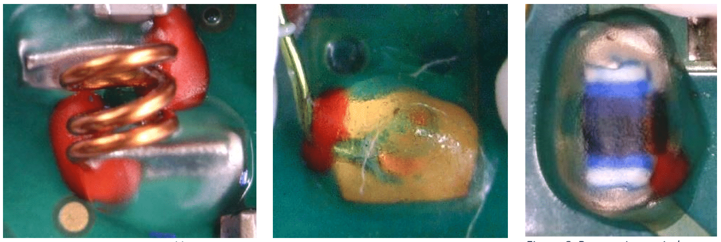 Figure 4: Pre-coating on air coil legs. Figure 5: Pre-coating on weld spot. Figure 6: Pre-coating on inductor.