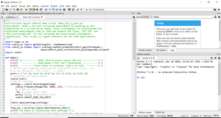 In addition to the demo_full_2_port script, Mini-Circuits provides other Python examples, such as the demo_deembed script and more. Furthermore, students can program the UVNA-63 with MATLAB as opposed to Python.