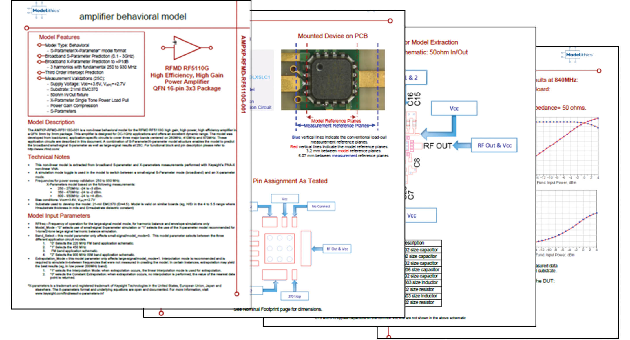 Information and simulations from example models were used to illustrate the type of documentation provided for each model along with a range of measurement validations showing excellent correlations are possible with nonlinear test data, even if derived from completely independent test benches and verifying test data not used as part of the model development data set.
