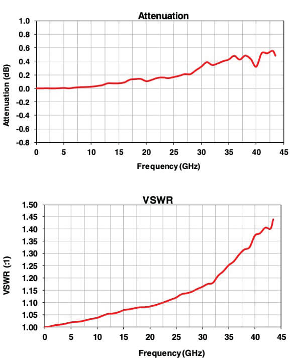 KAT-0-DG+ provides very low insertion loss with excellent flatness versus frequency. Its VSWR is 1.2:1 up to 32 GHz and 1.37 up to 40 GHz. Characteristic performance of insertion loss and VSWR for this model is shown in Figure 5. This performance makes KAT-0-DG+ suitable for use in die characterization.