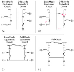 This condition is satisfied when the corresponding elements of the even and odd mode equivalent circuits are duals of one another. The derivation of a reflectionless lowpass filter following this methodology is illustrated in Figure 1.