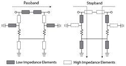 In the resulting circuit, signals in the filter’s passband travel directly through, from input to output. Signals in the filter’s stopband are routed directly to the resistors, which terminate the signal internally (see Figure 2).