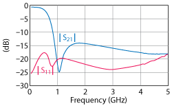 The reflectionless filter, however, causes no such effects to the mixer performance because the spurious mixing products are absorbed, rather than reflected back into the mixer where they can interfere. The conversion loss curve for the mixer in this setup not only lacks the suck-out effect shown by the traditional filter, but is also entirely insensitive to the line length between the filter and the mixer.