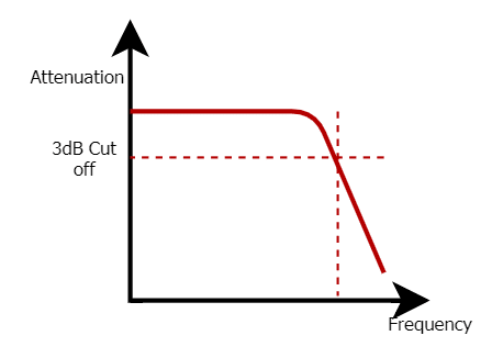 As the name suggests, a low pass filter allows only low frequencies to pass through while rejecting high frequencies. High frequencies are attenuated above the 3 dB cut-off as shown in Figure 3.