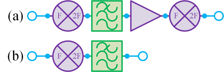 This issue can be solved by leveraging the unique capabilities of reflectionless filters. To demonstrate this solution, an experiment was conducted with a doubler test circuit and a 4X multiplier chain (see Figure 2). Each experiment was conducted using comparable reflective and reflectionless filters, and the results were then analyzed.