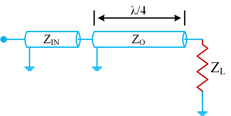 גרסה נפוצה של שנאי קו תמסורת היא שנאי קו תמסורת לרבע גל. בטופולוגיה זו משתמשים בקו תמסורת עם עכבה אופיינית שמאפשרת תיאום עכבות בין עכבת הכניסה לעומס. האורך של שנאי רבע גל מוכתב על ידי תדירות הפעולה הרצויה, והוא מוגבל לאוקטבה אחת של רוחב הפס סביב התדירות המרכזית. ניקח לדוגמה קו תמסורת ללא הפסדים עם עכבה אופיינית Z0 ואורך L, שמחובר בין עכבת הכניסה Zin לבין עכבת היציאה ZL כפי שמוצג באיור 5. על מנת ליצור תיאום בין Zin לבין ZL, יש צורך שהעכבה האופיינית של קו התמסורת לרבע גל תהיה השורש הריבועי של Zin מוכפל ב- ZL (משוואה 3).