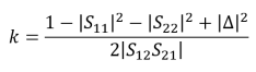An amplifier can also be simultaneously conjugately matched at the input and the output if the necessary stability condition of k>1 is satisfied. Here, k is calculated using the following equation: