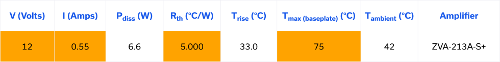 ZVA-213A-S+ ➜ Rth (⁰C/W) = Trise (⁰C)/Pdiss (W) = 25⁰C/6.6W = 3.788⁰C/W