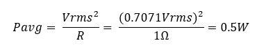 - The mean of the squared voltage waveform, which is average power into a 1Ω load (0.5W), represented by the gray dotted line
