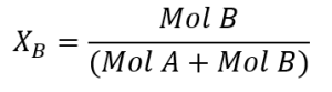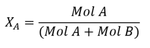 One way to express the relative amounts of substances in compounds is with a measure called the mole fraction. Mole fraction X is the ratio of moles of one substance in a mixture to the total number of moles of all substances. For a mixture of two substances, A and B, the mole fractions of each would be written as follows:
