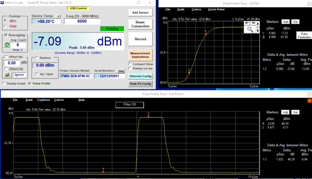 PC screen shot using PWR-SEN-8PW-RC Power Sensor with Pulse Profile Trace