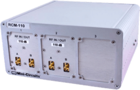 Mini-Circuits’ RCM-100 series multi-channel programmable attenuator systems offer flexibility and fast turnaround for compact test setups. The design consists of a small, light-weight chassis comprising up to three open hardware windows, supporting a flexible choice of programmable attenuator options, with exceptionally fast turnaround time: