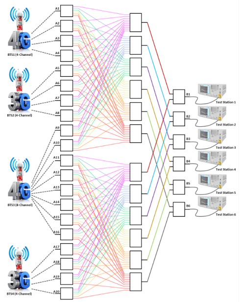 Testing cellular network infrastructure often requires measurement and data collection from dozens – even hundreds – of base stations (BTS) within a test environment. The volume and complexity of signal traffic in these multi-device, multi-user test systems necessitates commensurate capability for routing signals between base stations and test stations. By partnering with customers to lower costs and improve efficiency in high-volume test systems, Mini-Circuits has developed a line of high-order switch matrices supporting a wide variety of switching configurations and control methods. This article will present a case study of a 20 x 6 non-blocking, full access switch matrix used to facilitate signal routing in a cellular network test system with extensions for other applications.
